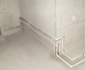 地砖、墙顶面乳胶漆、不锈钢地漏、挡水线45度磨边拼角、包立管